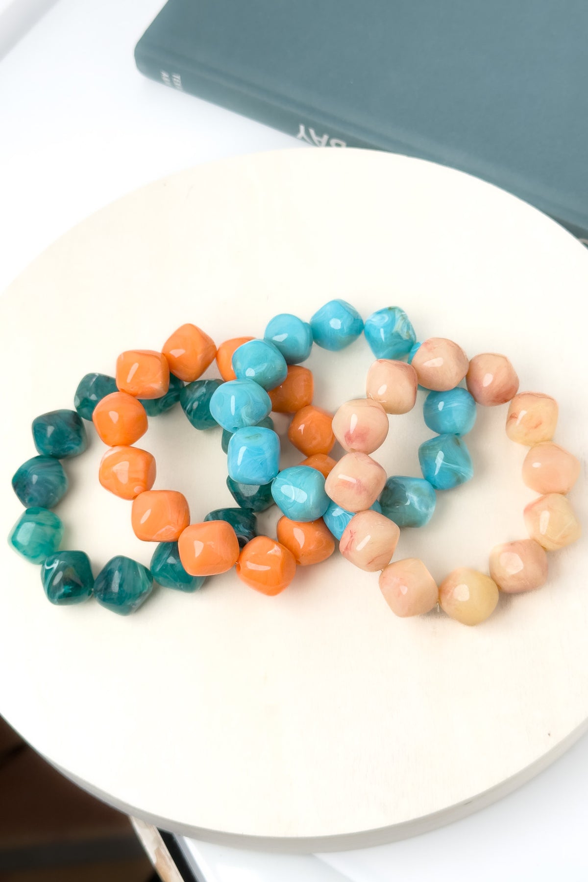 The Gulf Coast Stone Bracelet is a vibrant yet refined accessory inspired by the colors and character of the coast. Featuring smooth, polished stones with a softly marbled finish, this bracelet brings a fresh pop of color while remaining effortlessly wearable. Designed to stand alone or stack beautifully, it captures an easy, collected feel that’s perfect for everyday styling.