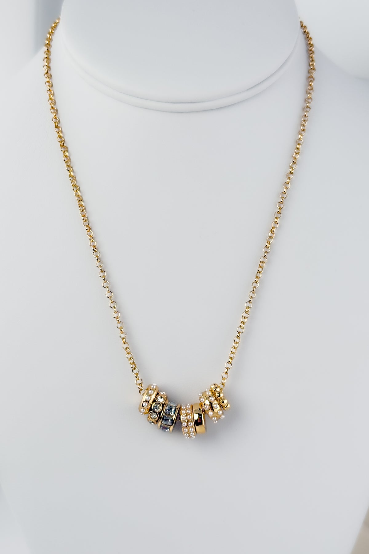 Elevated and feminine, The Lila Necklace features a mix of glossy gold, tiny pearls, and sparkling crystal beads for a softly glamorous touch. Each charm glides effortlessly along a delicate 16–18” adjustable gold chain — perfect for layering or wearing solo when you want just the right amount of shine.