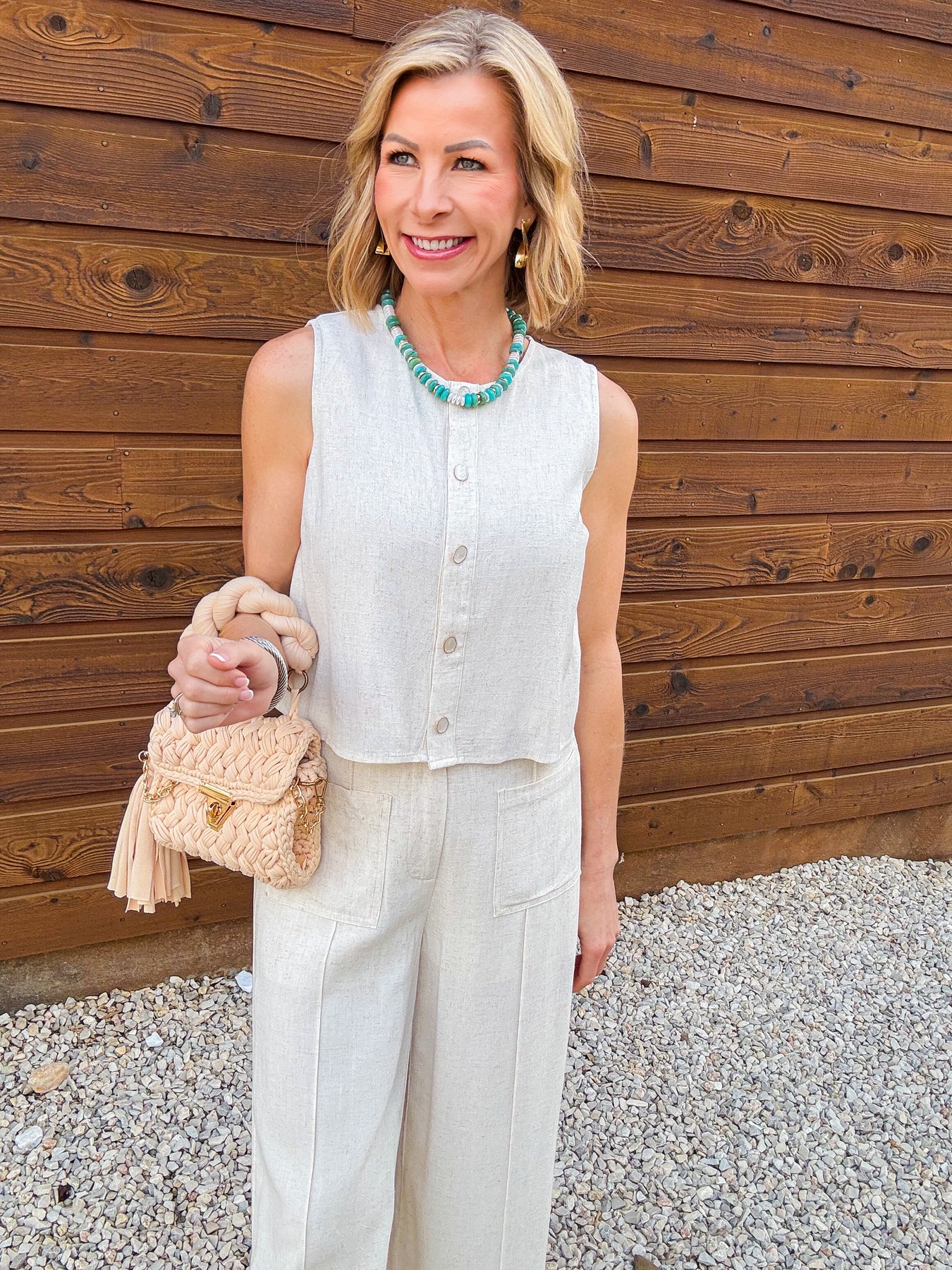 The Stonehaven Linen Set is the definition of effortless, elevated style. Designed with a lightweight linen blend and clean, tailored lines, this matching set offers a polished look without sacrificing comfort. Wear it together for a chic, put-together outfit or style each piece separately for endless versatility throughout the season.