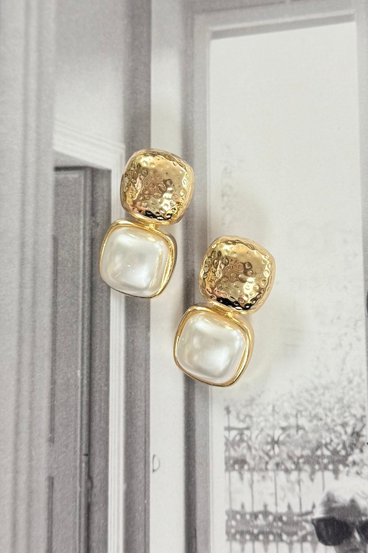 Elevate your style with our 14K Gold Statement.Add a touch of elegance to your ensemble with the 14K Elevated Pearl Post earrings. Featuring a beautiful pearl, these textured gold earrings are the perfect accessory for any occasion. Elevate your style with these stunning earrings that exude sophistication and class.