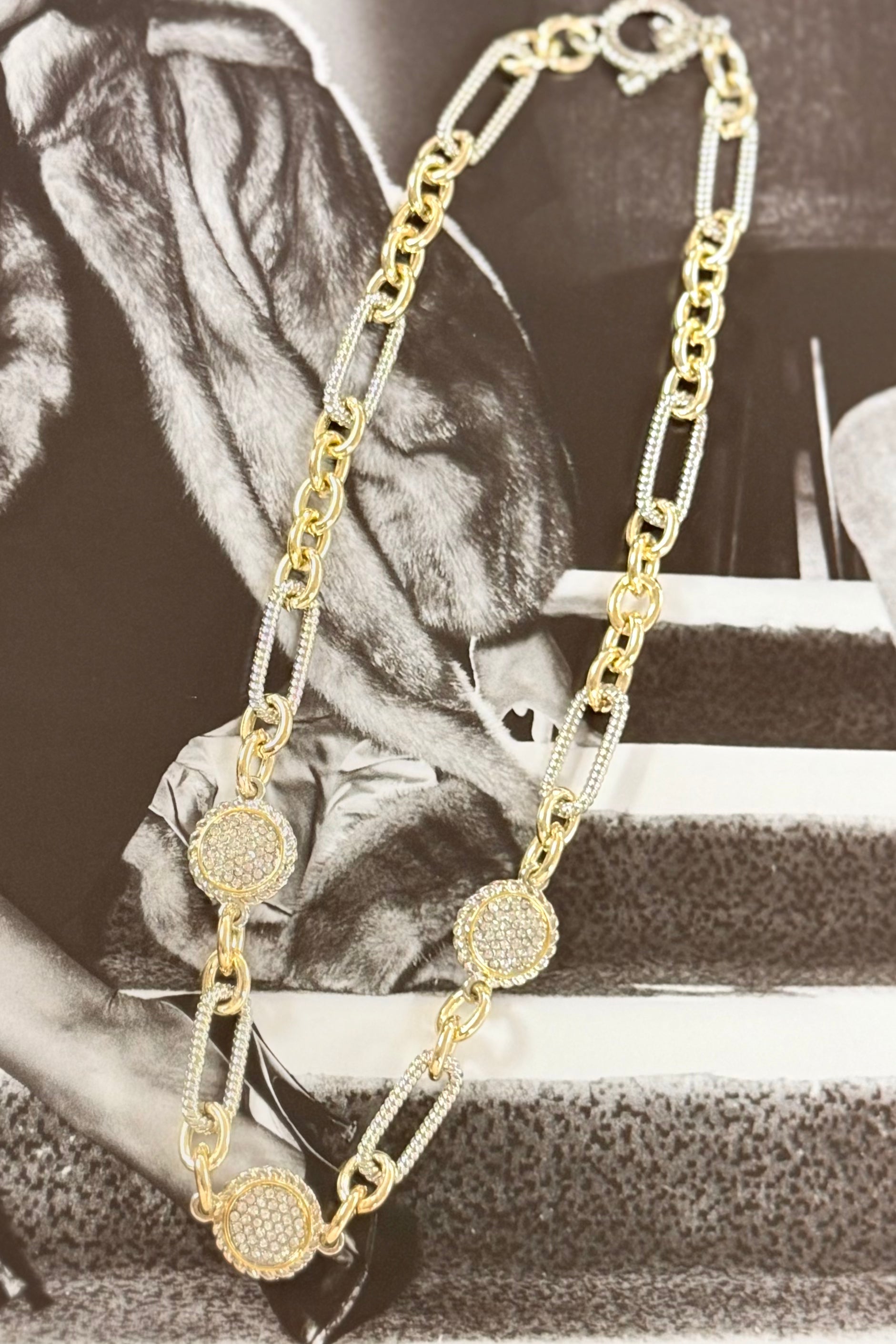 Effortless glam with a twist ✨ This stunning necklace pairs a textured twisted chain with a sparkling pavé crystal link charm for just the right amount of shine. Layer it or let it shine solo—it’s a timeless piece that instantly elevates any look.