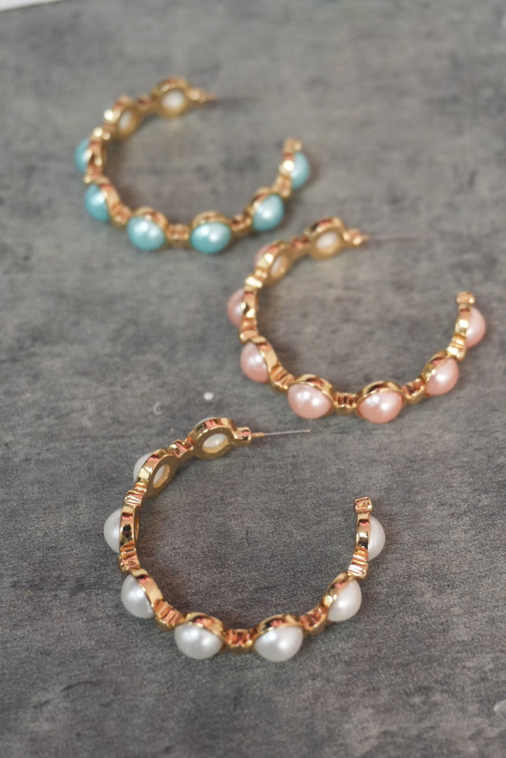 Rock these Garden Party Hoops at your next party! These pearl hoops are perfect for any garden party.