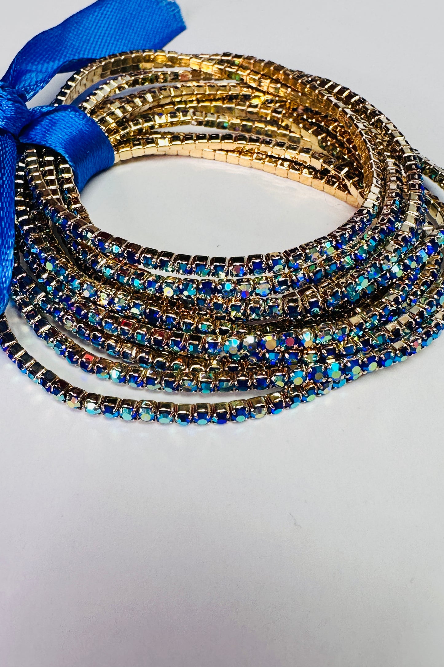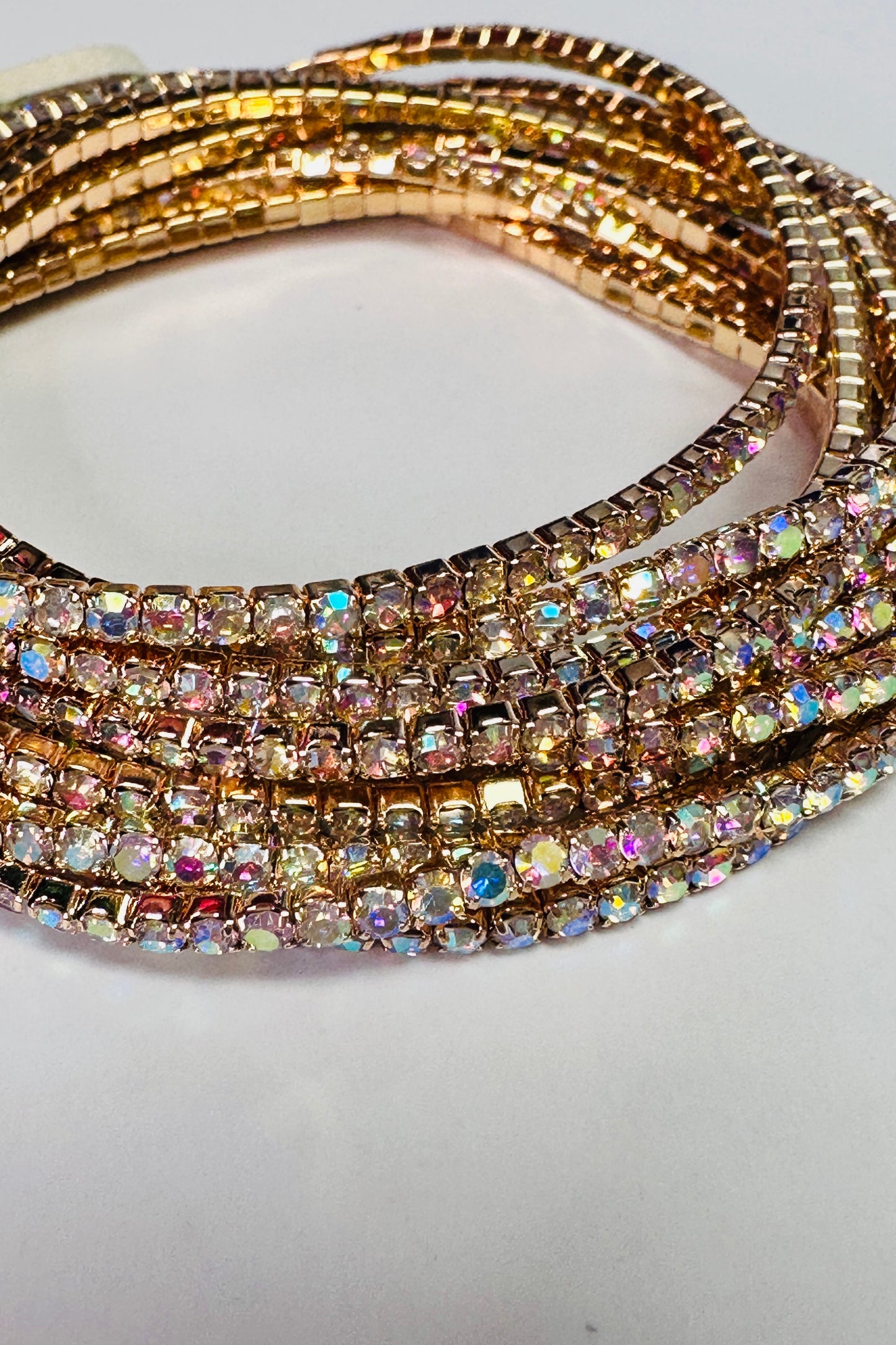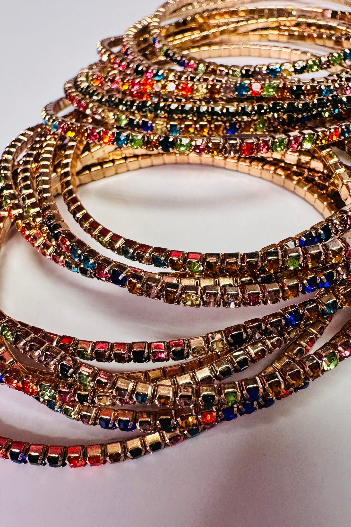 "Add a touch of sparkle to your outfit with our Rhinestone Stretch Bracelets! Available in a variety of colors, these bracelets are perfect for any occasion. Stretchy for easy wear and adorned with dazzling rhinestones, they're sure to make a statement (and add some fun to your wardrobe)."