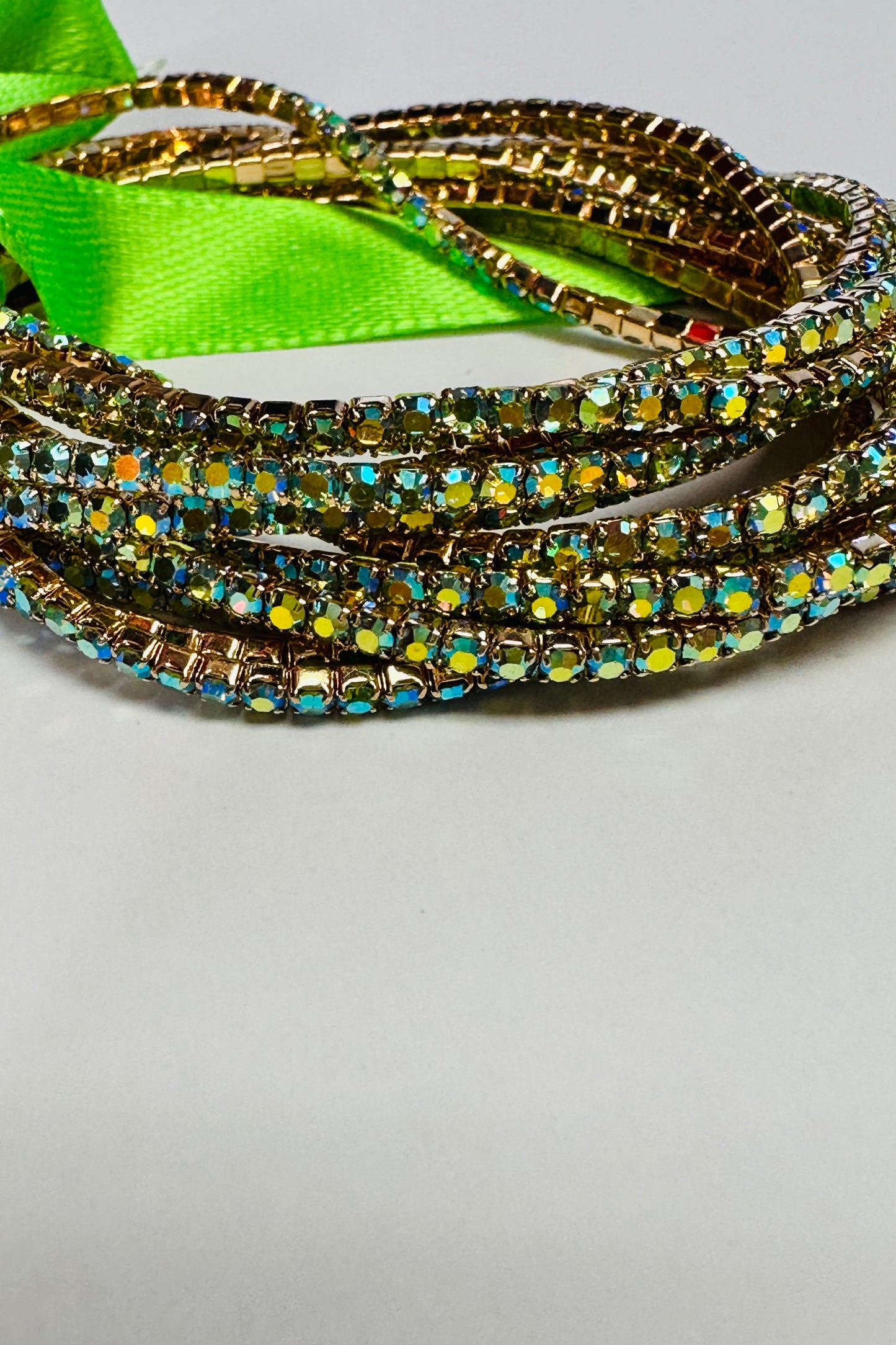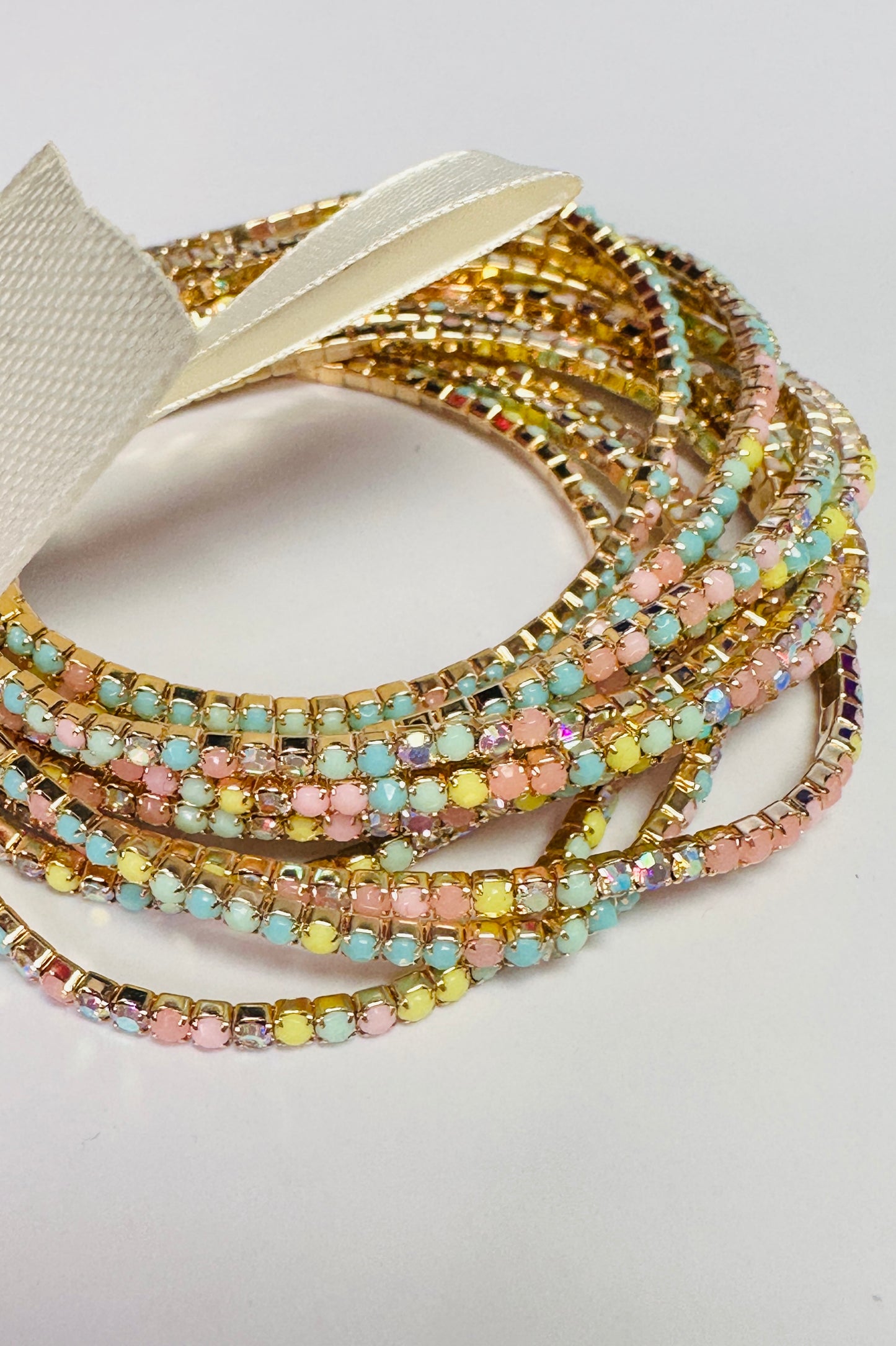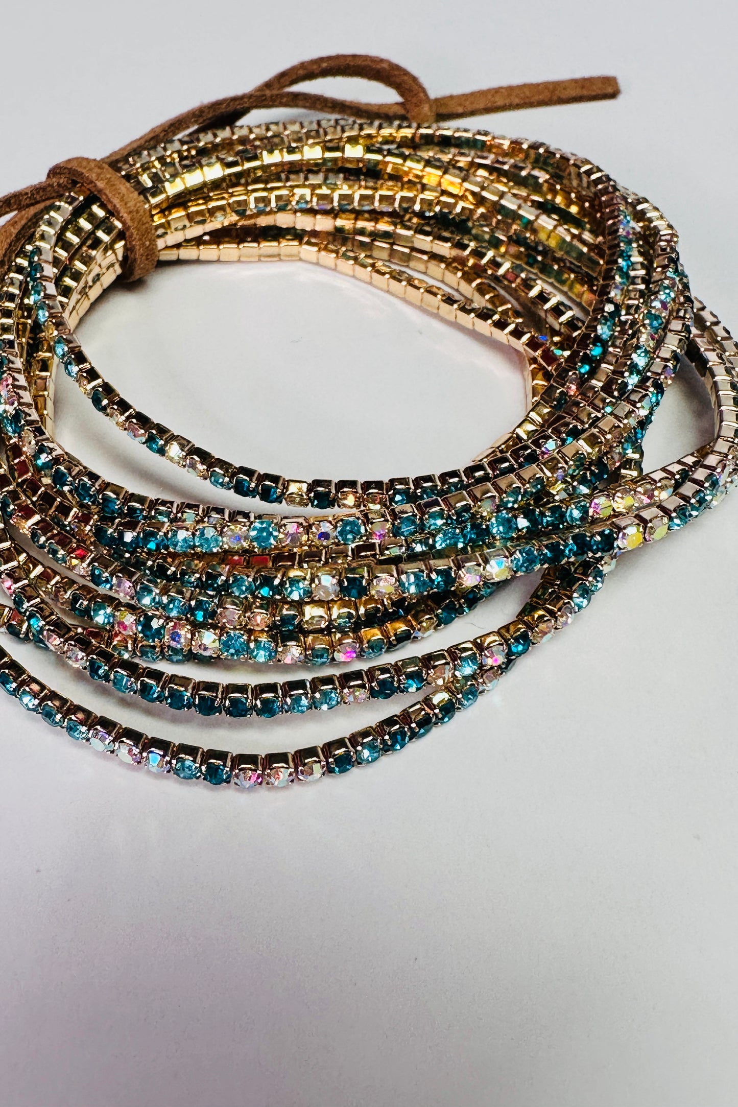 "Add a touch of sparkle to your outfit with our Rhinestone Stretch Bracelets! Available in a variety of colors, these bracelets are perfect for any occasion. Stretchy for easy wear and adorned with dazzling rhinestones, they're sure to make a statement (and add some fun to your wardrobe)."