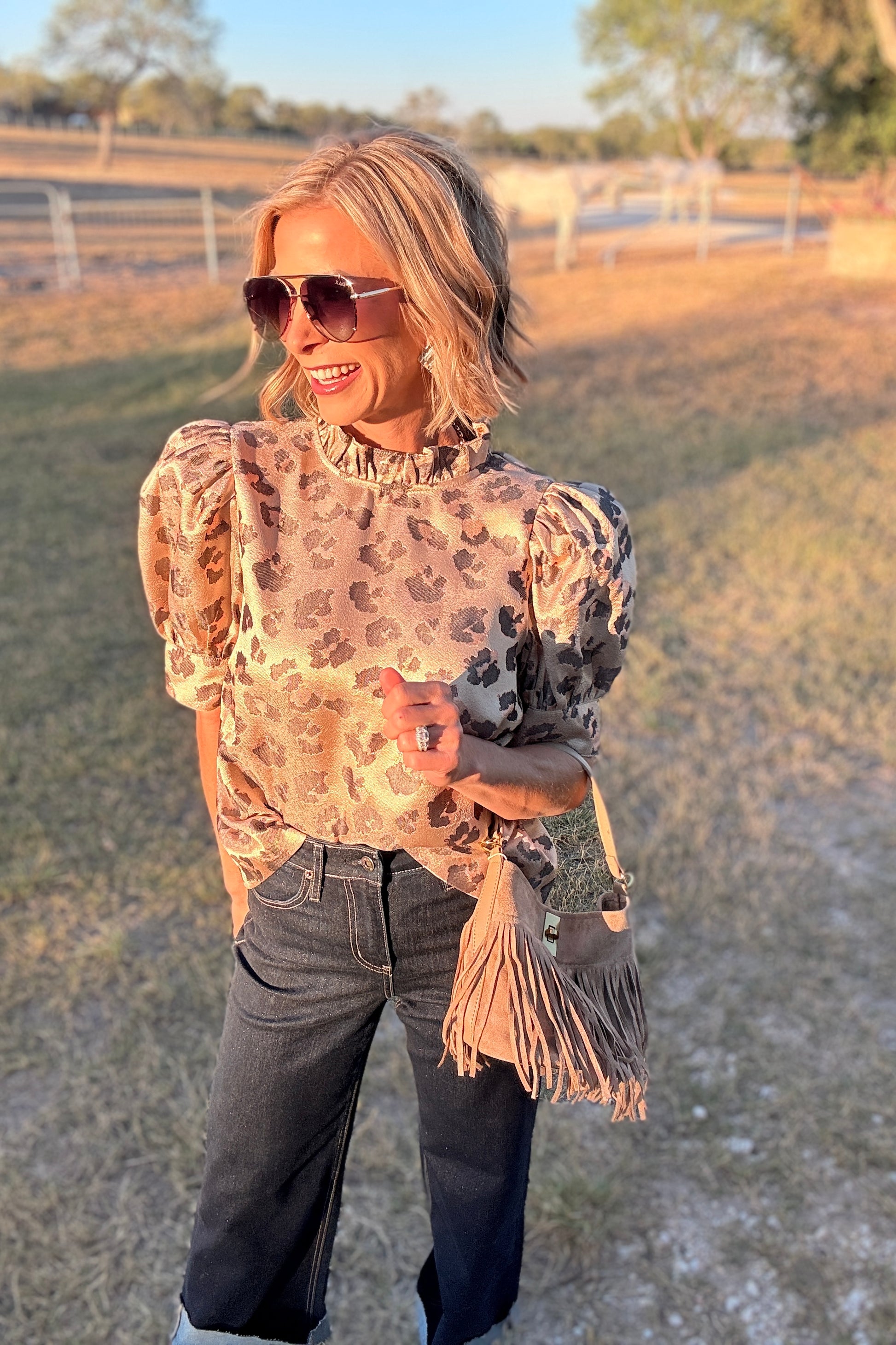 Add a little shimmer to your everyday denim with our High Rise Wide Leg Glitter Jean. The flattering high-rise fit and subtle sparkle woven into the fabric make these jeans equal parts comfortable and chic. Perfect for dressing up with heels or styling casually with sneakers, they’re an effortless statement piece that shines day or night. ✨