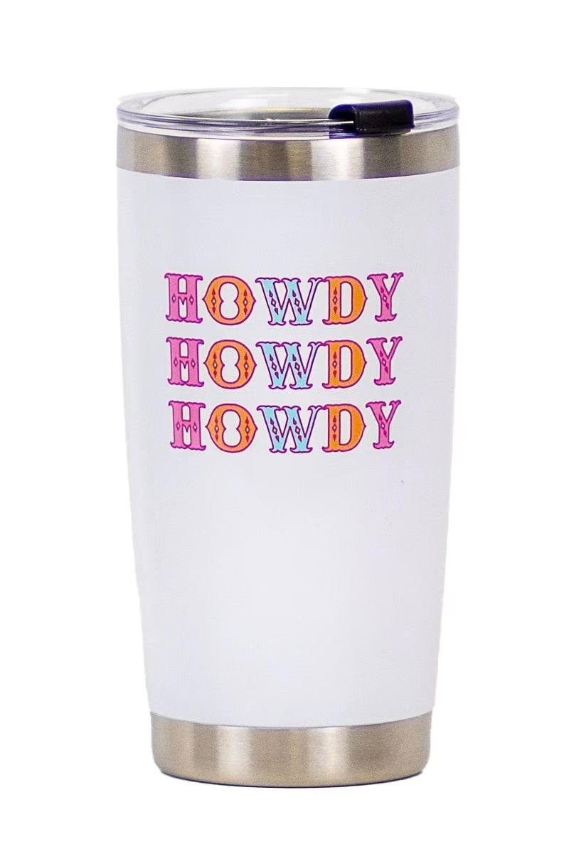 Stay cool with the Howdy Tumbler! Our 20 oz stainless steel tumbler boasts a 12-hour cold retention and 6-hour hot retention, making it perfect for on-the-go adventures and tailgating with friends. Plus, the playful "howdy howdy howdy" design adds a touch of charm to your daily routine!