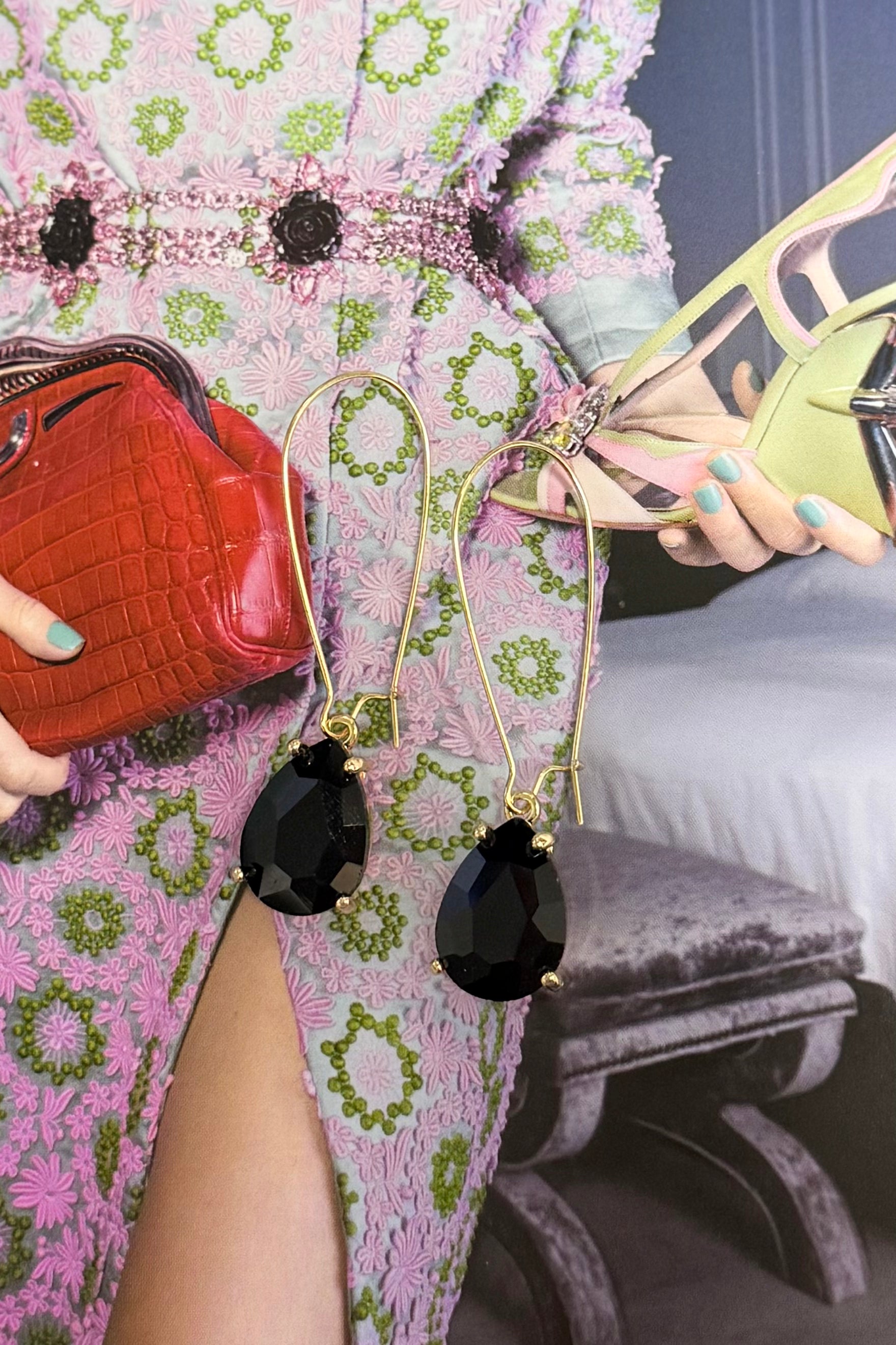 The Midnight Muse Earrings bring instant sophistication with their deep onyx sparkle and sleek gold setting. These teardrop beauties catch the light beautifully and add a refined, moody edge to any look—from cocktail hour to an elevated evening ensemble.