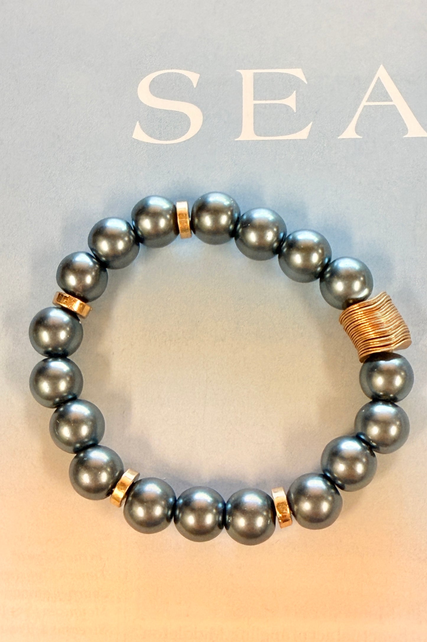 Add elegance to your outfit with our Pearl Grey Bracelet. Featuring smoky grey pearls and delicate gold beads, this boutique accessory exudes sophistication and charm. Elevate your style with this beautiful piece.