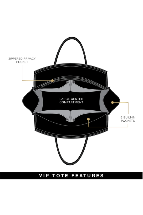 The Timeless Quilted VIP Tote brings effortless sophistication to every journey. Featuring a spacious interior with nine thoughtfully designed compartments, this luxe quilted tote keeps your essentials organized whether you’re headed to a weekend getaway or a business trip. Its trolley sleeve, elegant structure, and refined detailing make it the perfect companion for stylish travelers — especially when paired with the matching Timeless Quilted VIP Duffle.