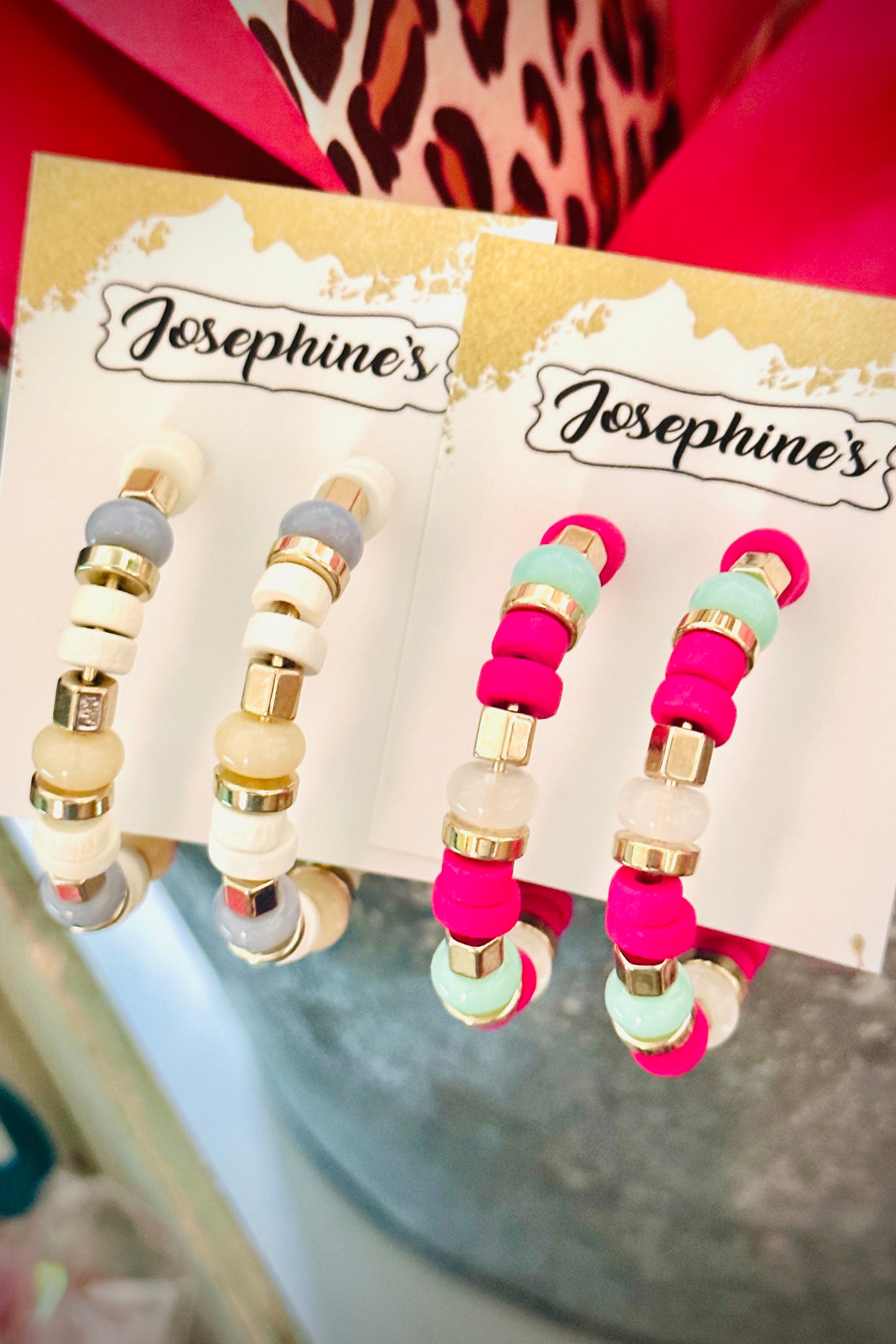 The Chloe earring is lightweight and is available in fuchsia and a cream tone.