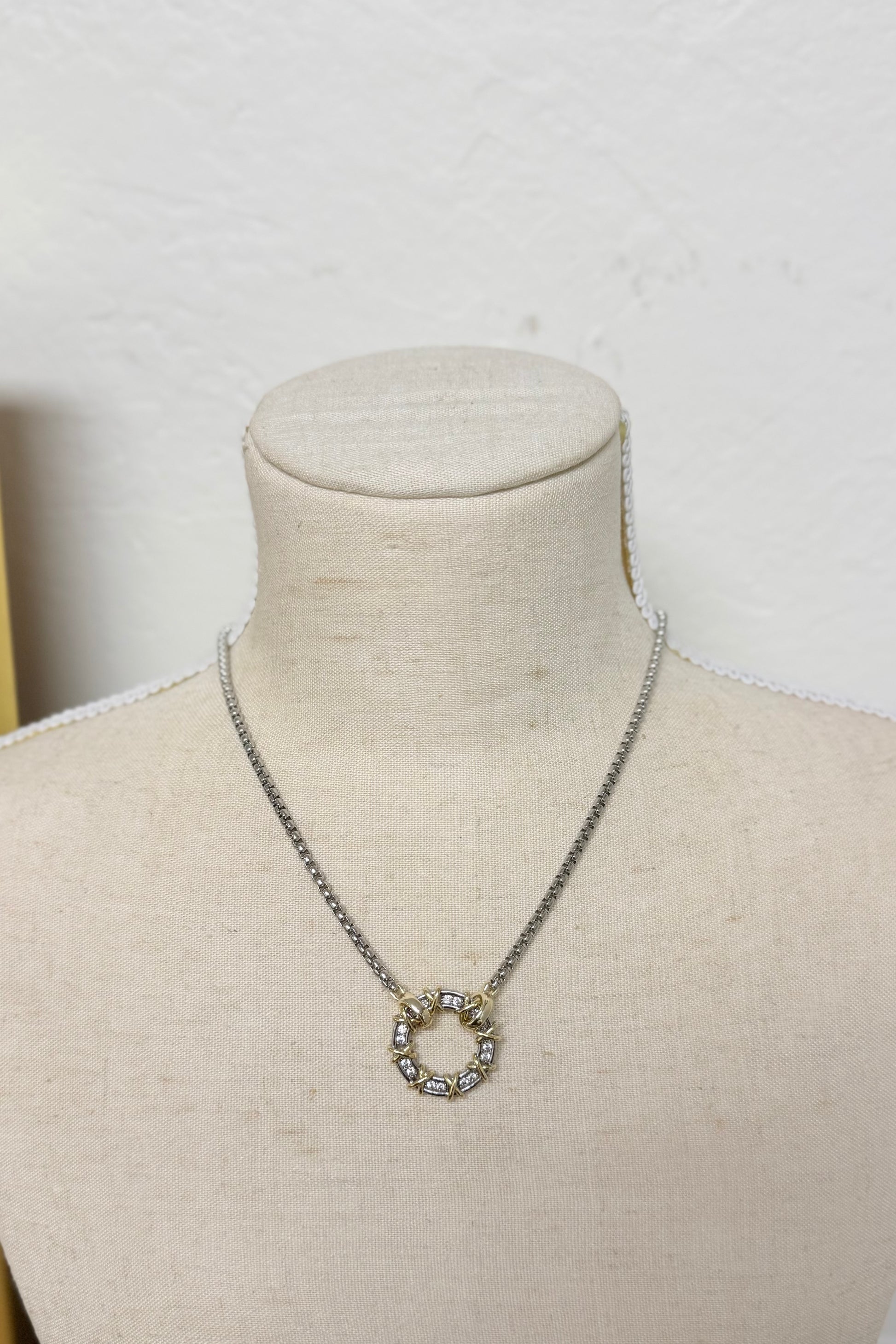 The Corinne Circle Necklace is a timeless blend of elegance and versatility. Featuring a delicate mixed-metal chain and a crystal-accented open circle pendant, this piece adds just the right amount of sparkle without feeling overdone. Effortless and refined, Corinne is perfect worn alone for a clean, polished look or layered with your favorite chains for added dimension.