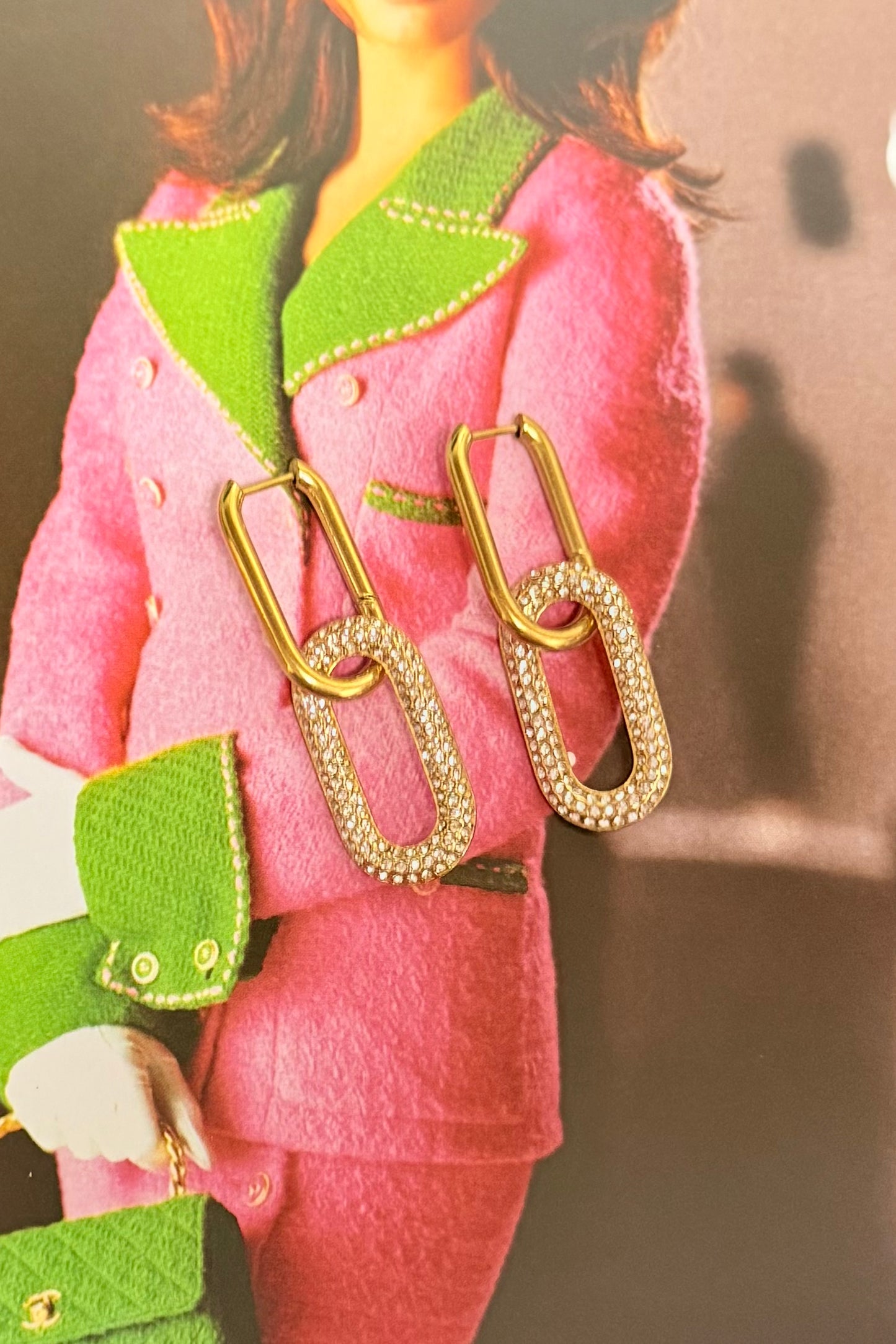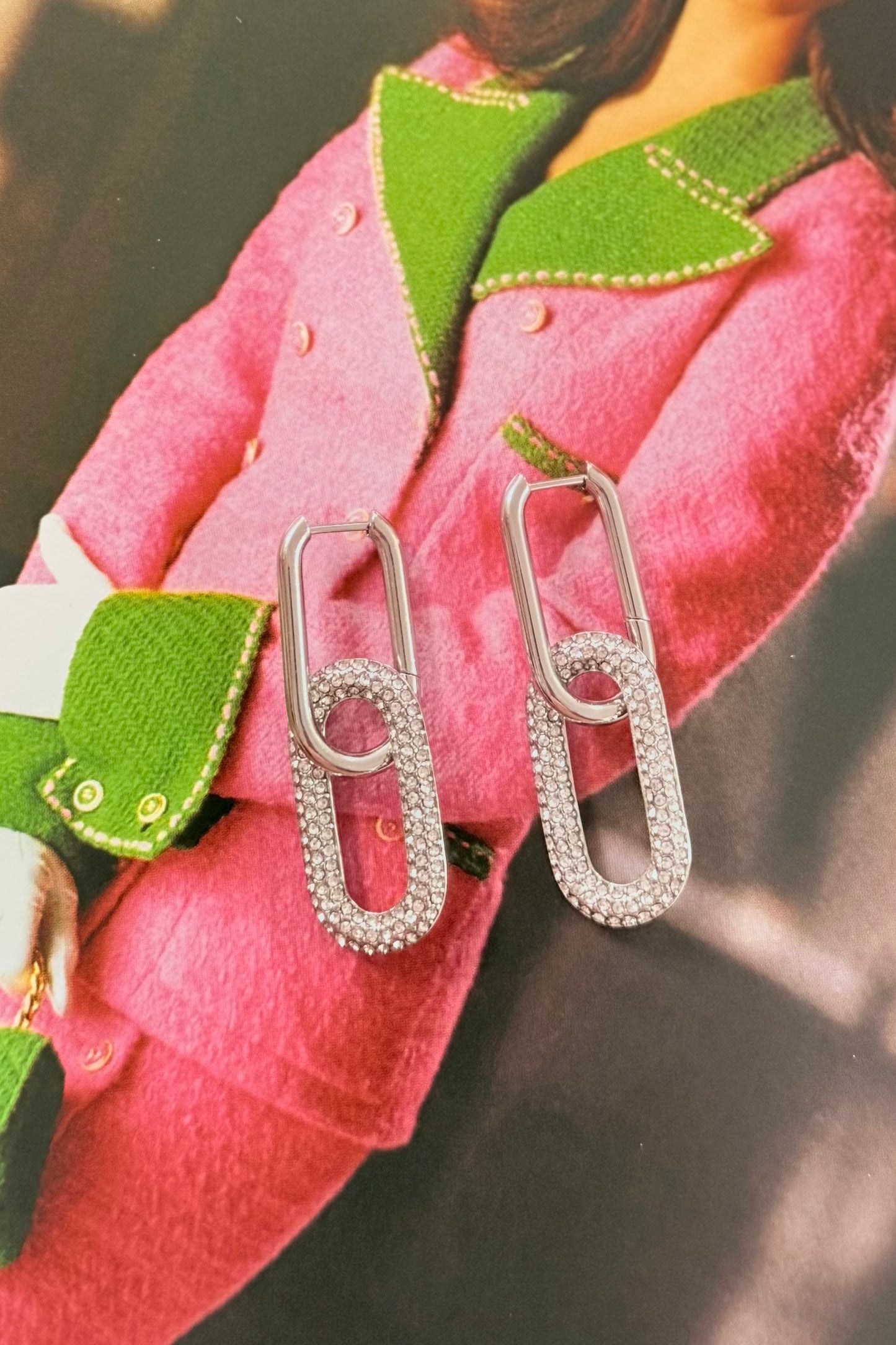 Enhance your style with The Lily Earring. Featuring a delicate chain link design, these earrings add a touch of elegance to any outfit. Adorned with sparkling crystals, they are a must-have accessory for any fashionista. Elevate your look and stand out from the crowd with The Lily Earring!