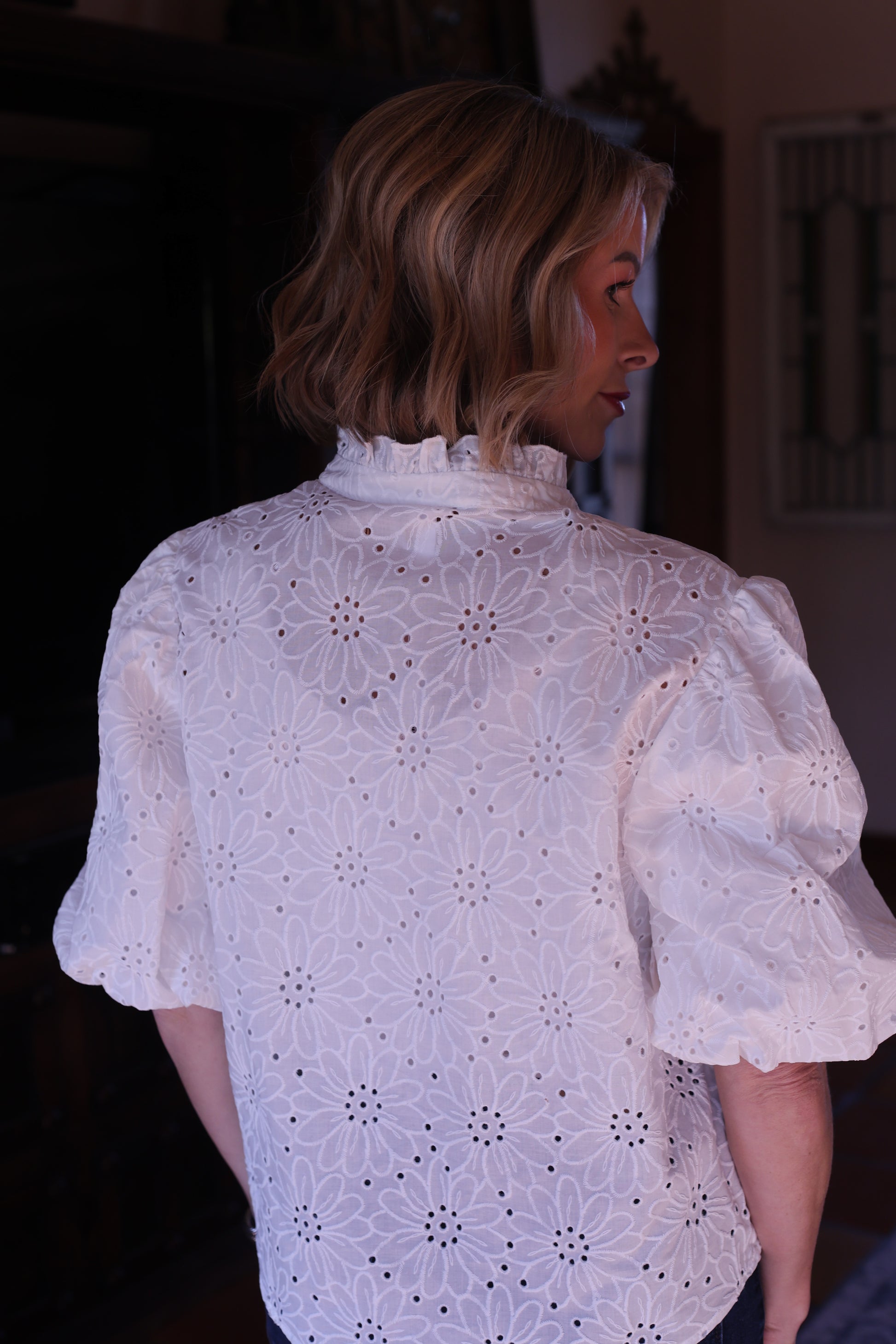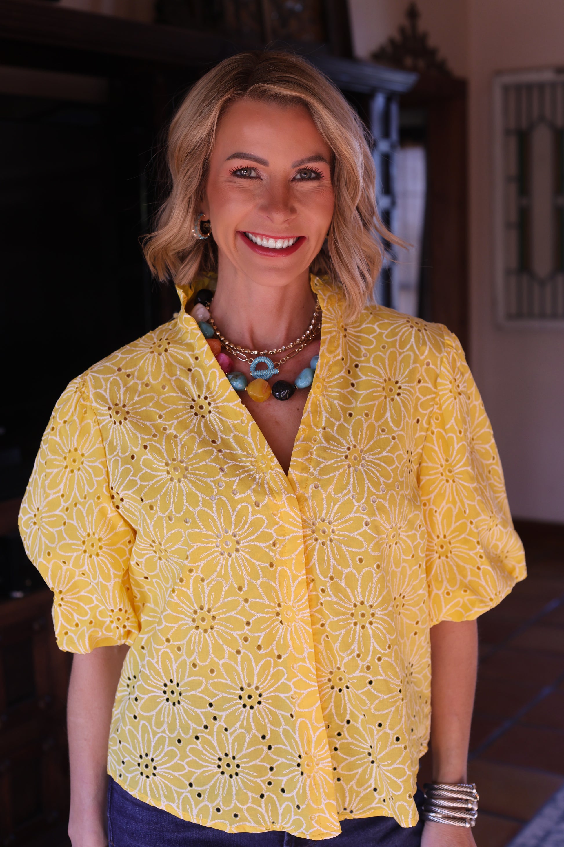 The Sunlit Eyelet Blouse is the kind of effortless piece that instantly elevates your everyday look. Crafted from breathable cotton with delicate eyelet detailing, it feels light, airy, and polished all at once. Easy to dress up with tailored shorts or keep casual with denim, this is a timeless boutique staple you’ll reach for all season long.