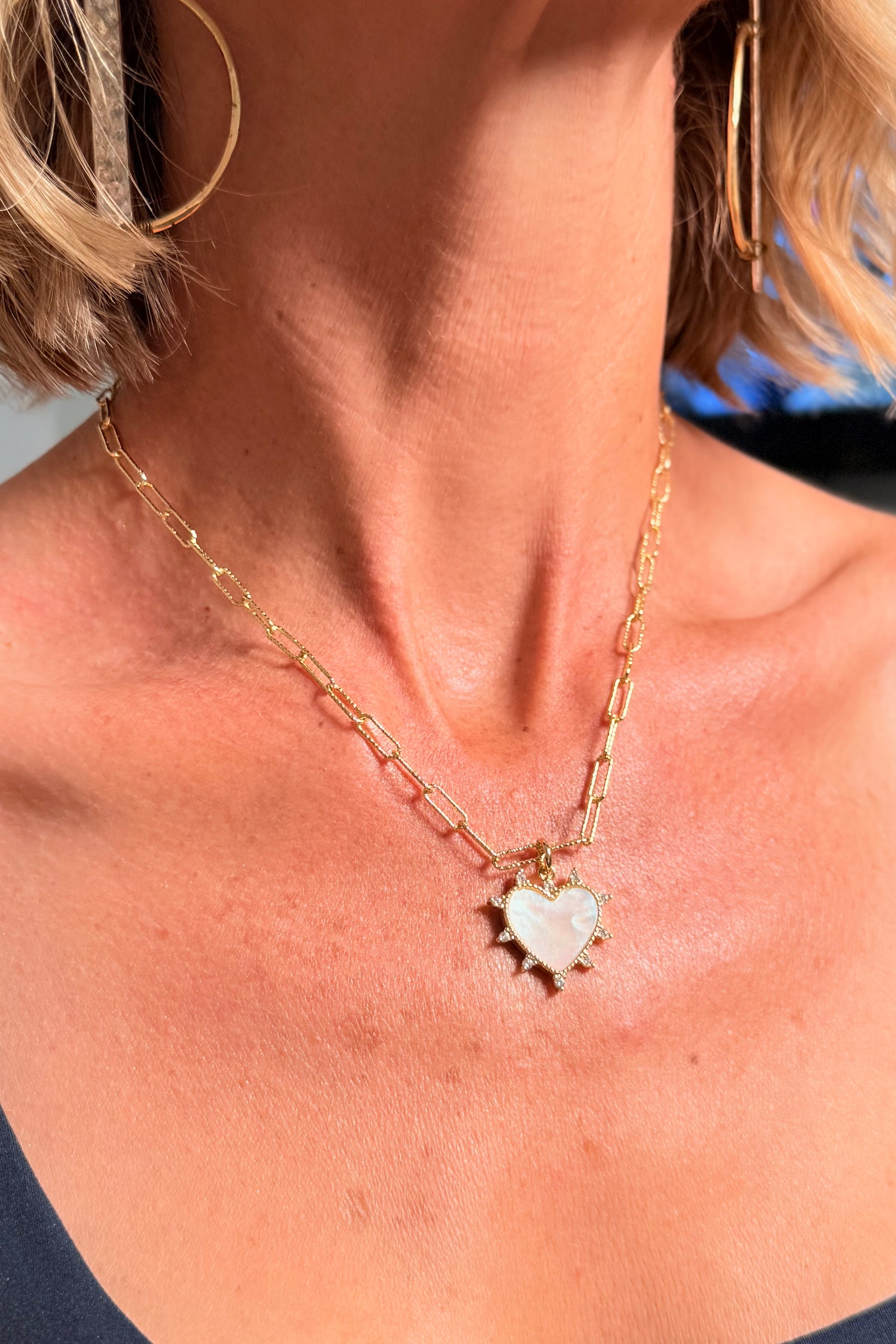 Graceful and full of light, the Tiffany Necklace showcases a delicate heart pendant framed with radiant crystals on a gold link chain. A nod to old-world glamour with a touch of modern sophistication, this piece was made to shine in every setting.